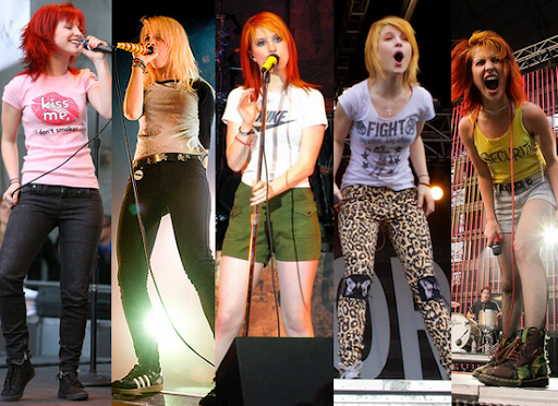 Ela também aposta firme no all star uma calça skinny de preferência preta,uma camiseta de nerd ,xadrez ou uma banda é esse o look de Hayley Williams um look também básico e muito estiloso ,se bem que a Hayley ela é muito ousada como você pode ver nas fotos abaixo :